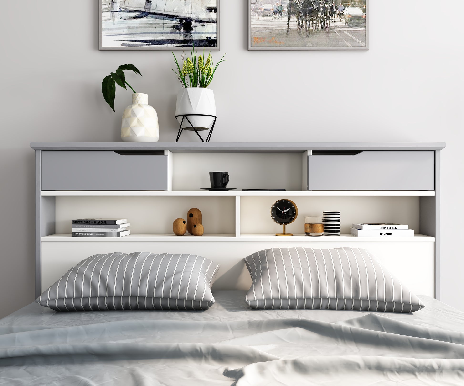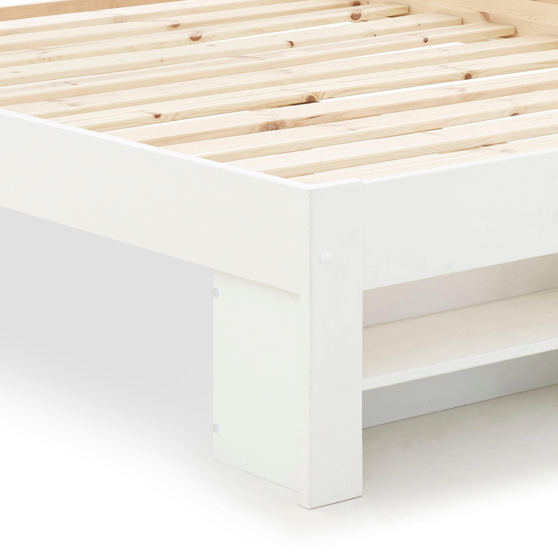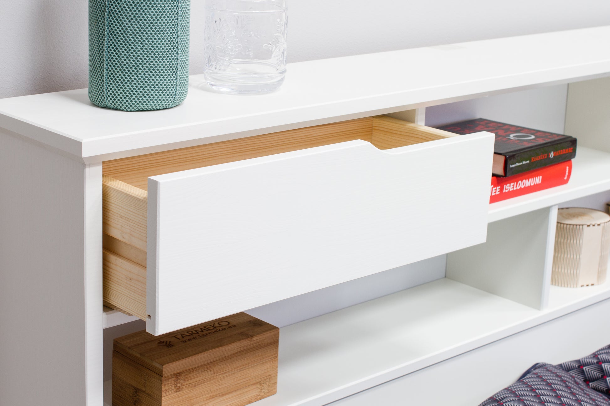 A charming and versatile wooden bed suitable for any bedroom. The Fabio comes with a foot end and headboard that double up as storage spaces ideal for books, blankets and other trinkets. The headboard includes 2 small drawers. This solid bed frame comes with under-bed space that is ideal for 1 or 2 Fabio Drawers (1 either side of the bed) which are sold separately.