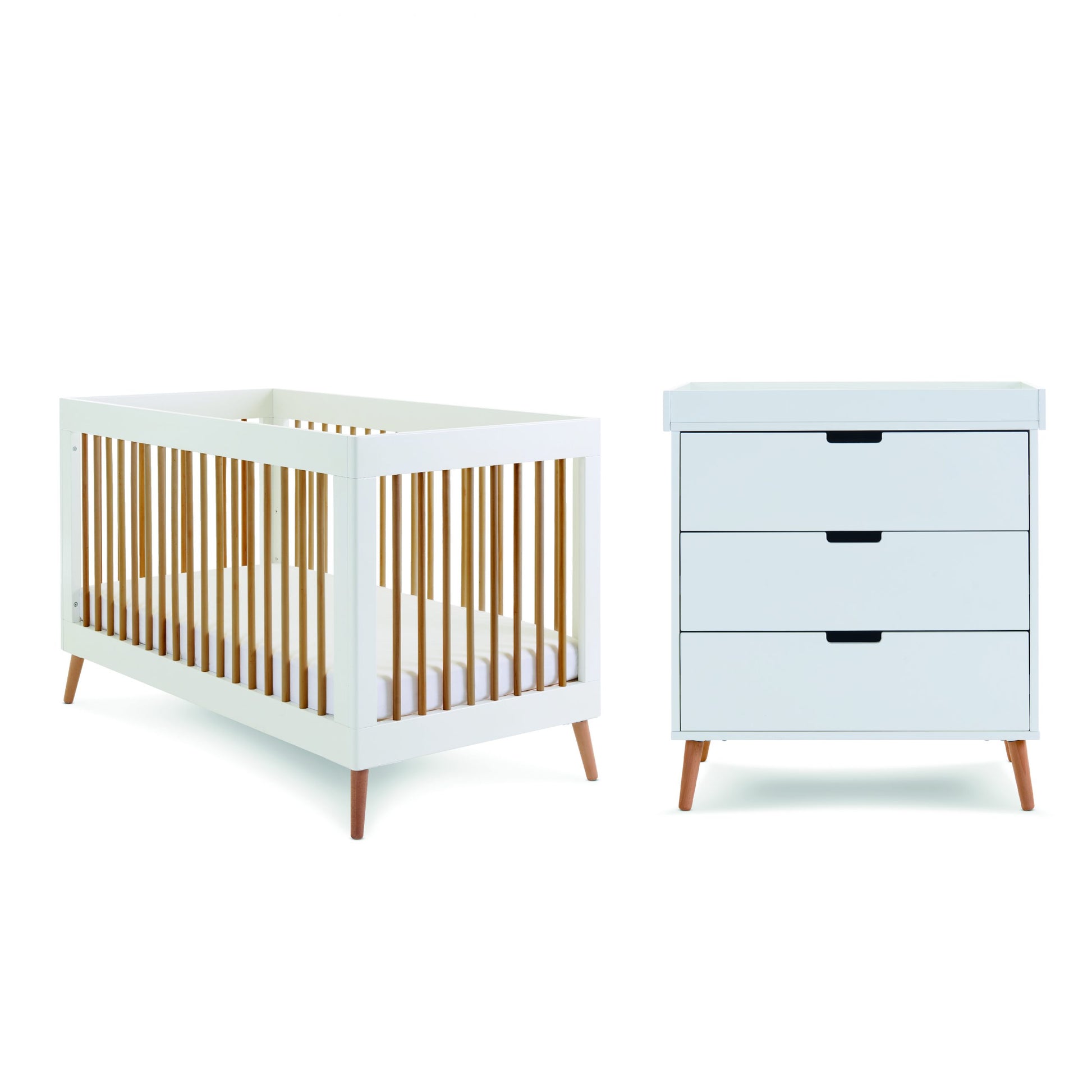 Obaby Maya 3 Piece Room Set - White with Natural 140 x 70