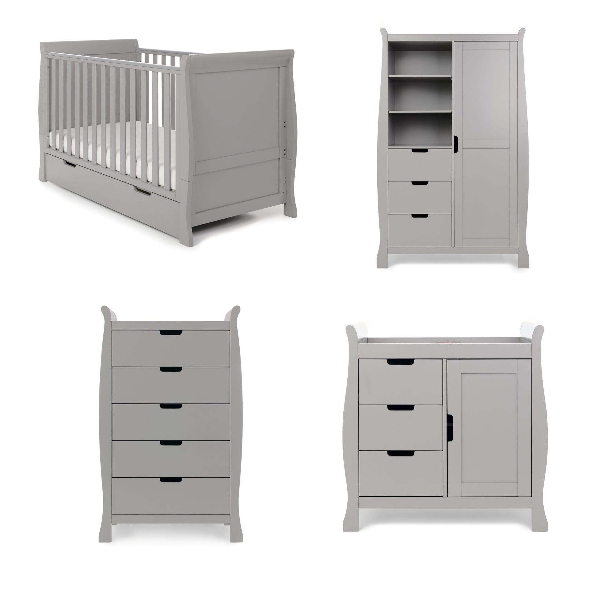 Obaby Stamford Classic Sleigh 4 Piece Room Set - Warm Grey 140 x 70